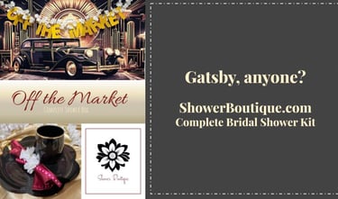 What comes in an all-in-one bridal shower kit? Our kits are themed so you're already on your way before you even open the box. All of our bridal shower kits include a digital invitation, digital games ready for print and play, original décor, bridal swag, tablecloths, place settings, pre-rolled napkin and utensil sets, your backdrop and damage-free hanging tools for easy setup, name tags, treat bags and a setup guide.